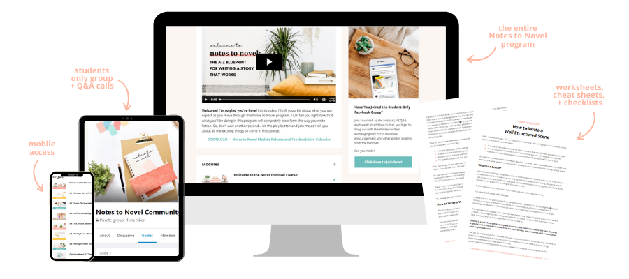 Notes to Novel is an 8-week live coaching program designed for new and stuck writers who are ready to finally write a story that feels unforgettable.
